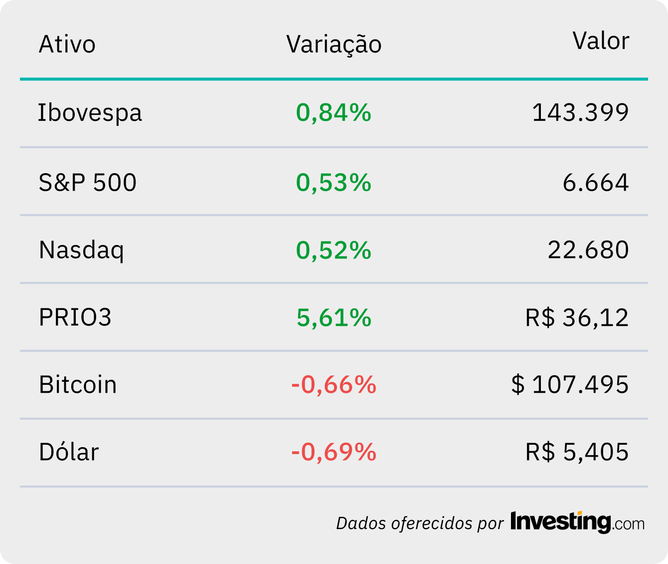No mercado acionário brasileiro, o destaque foi a petroleira Prio (PRIO3), que subiu 5,61% após a ANP autorizar a retomada da produção no campo de Peregrino, no litoral do Rio de Janeiro.