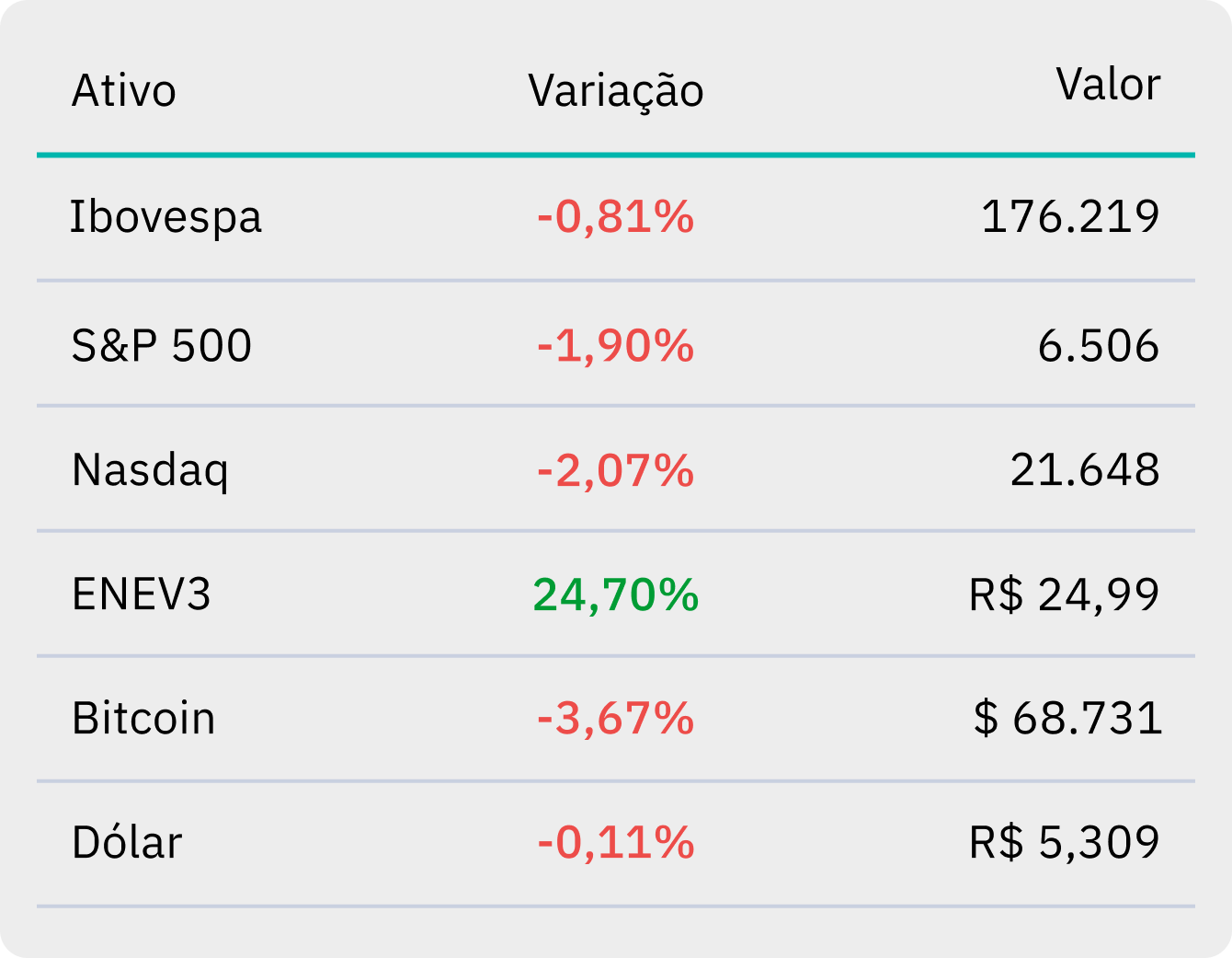 No mercado acionário, a Eneva (ENEV3) subiu 24,70% na última semana após ficar entre as principais vencedoras do leilão de energia do governo. ⚡