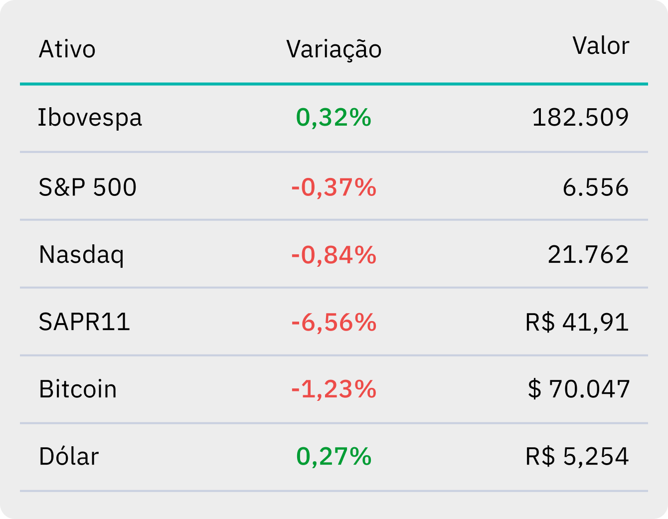 O Ibovespa fechou em alta de 0,32%, aos 182.509 pontos, nesta terça-feira (24). Em Wall Street, o S&P 500 caiu -0,37%, enquanto o Nasdaq recuou -0,84%.